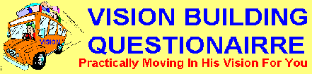 This Vision Building Questionairre and it's associated PopUp helps is designed to help you move practically into your God-given Vision/Calling. There are a series of questions helping you see where you ACTUALLY ARE in terms of Gifting and Vision/Calling with practical ways of identifying and overcoming hindrances in order to mature and move in these areas.