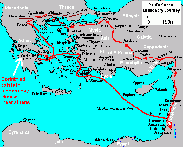 MAP OF PAUL'S SECOND MISSIONARY JOURNEY SHOWING THE LOCATION OF CORINTH