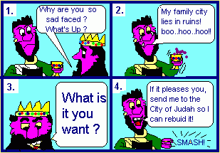 The king approached him because he saw something in Nehemiah that was troubling him. Nehemiah was faithfully carrying on with his job and carrying the God-given burden too! As he did this, God opened up the doors of opportunity. Nehemiah didn't try to open the door himself but simply waited upon the Lord with the burden until the Lord showed His time. |