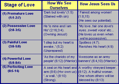 As we journey through this wonderful song of love we will see how Jesus lovingly draws us away from our own insecurities and problems and into a progressive maturity in relationship with Him. Indeed He reveals more of Himself as we give more of ourselves to Him. Also, we progressively see who we have been created to be, in His image, and to what great calling and purpose He has for us since before we were born! ( Eph 2:10, 2 Cor 3:18).